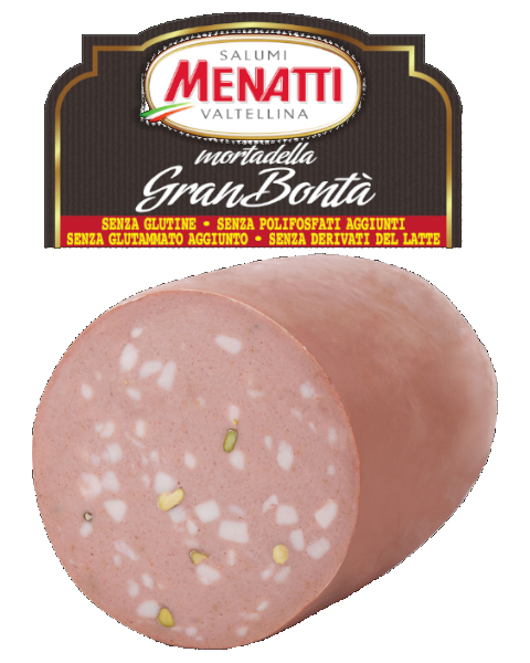 La Mortadella, o Bologna, è un insaccato cotto di puro suino, dalla forma cilindrica e tagliata a metà, di colore rosa e dal profumo intenso, leggermente speziato. La produzione della Mortadella Menatti segue la lavorazione secondo il metodo della tradizione emiliana e utilizza le rifilature minori di cosce suine selezionate, con l’aggiunta di lardello di gola, spezie, aromi selezionati e pistacchi.